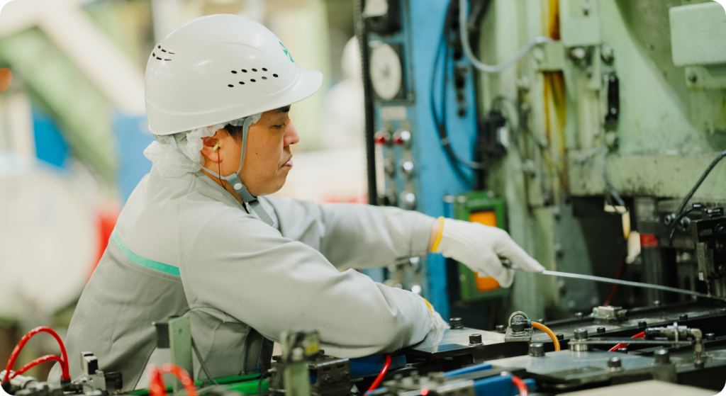 小さい頃から、機械いじりが好きでした。父親も製造系の仕事をしていたので、自然と工業系の高校へ。大和千葉製罐に入社したのも、機械いじりをしたかったから。オペレーターとしてキャリアをスタートして、今では製造ラインの責任者を務めています。主な仕事は、製造ライン全体が正常に稼働するように管理すること。もし不良品が出た場合は、原因に合わせてオペレーターに指示を出し、それでも直らない場合は私自身が対応することもあります。そして、品質管理も大切な仕事のひとつ。市場に出るものなので、細かくチェックを行っています。