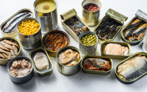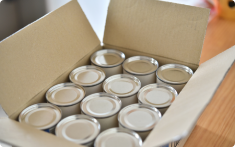賞味期限が長い缶詰は廃棄リスクが低く、食資源の有効活用に直結。常温での流通・保管ができるため、製造〜家庭内保存までの各段階でエコ効果を発揮します。省スペースでの陳列にも貢献。